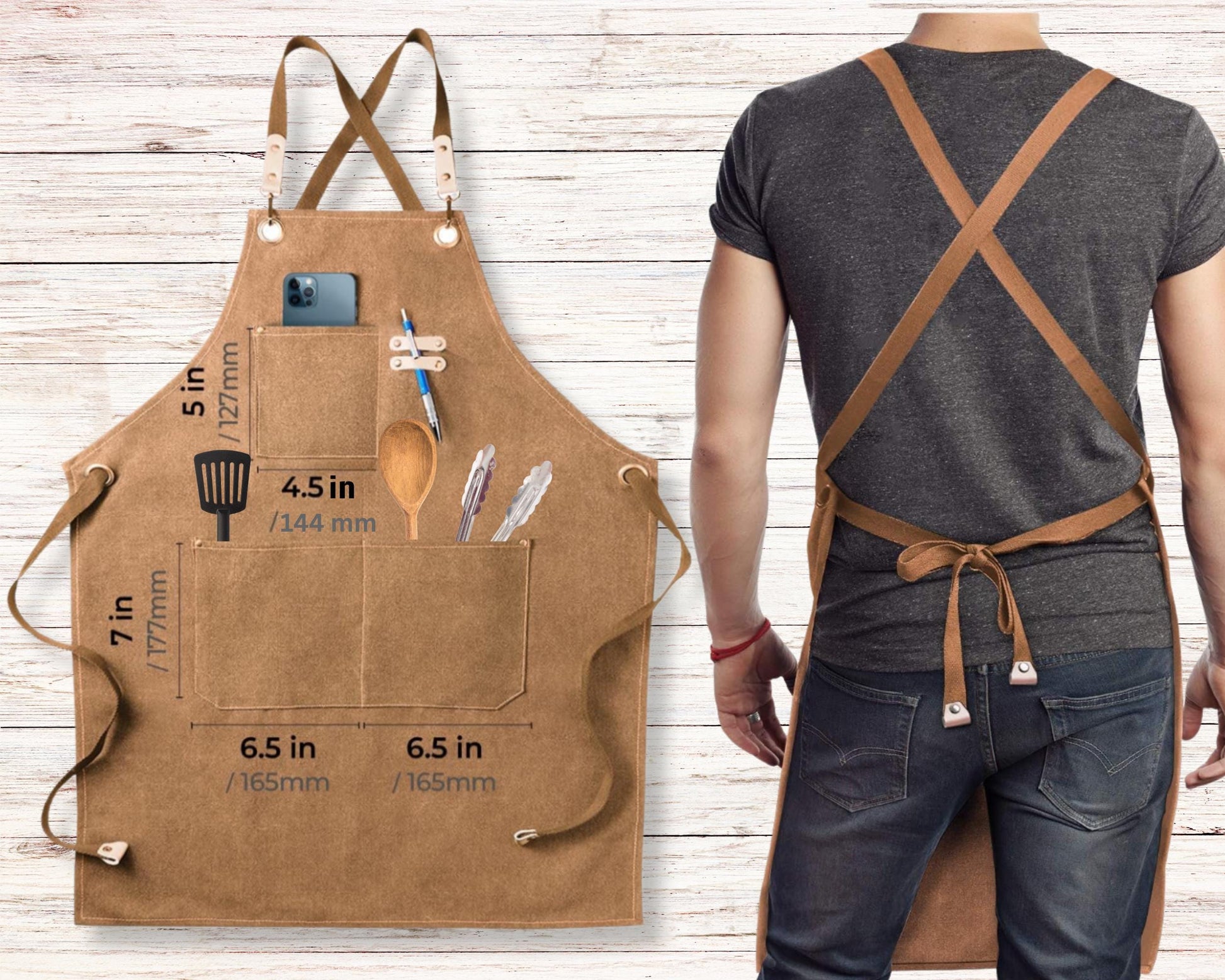 Crafted from heavy-duty canvas and genuine leather accents, this apron is built to withstand daily use.